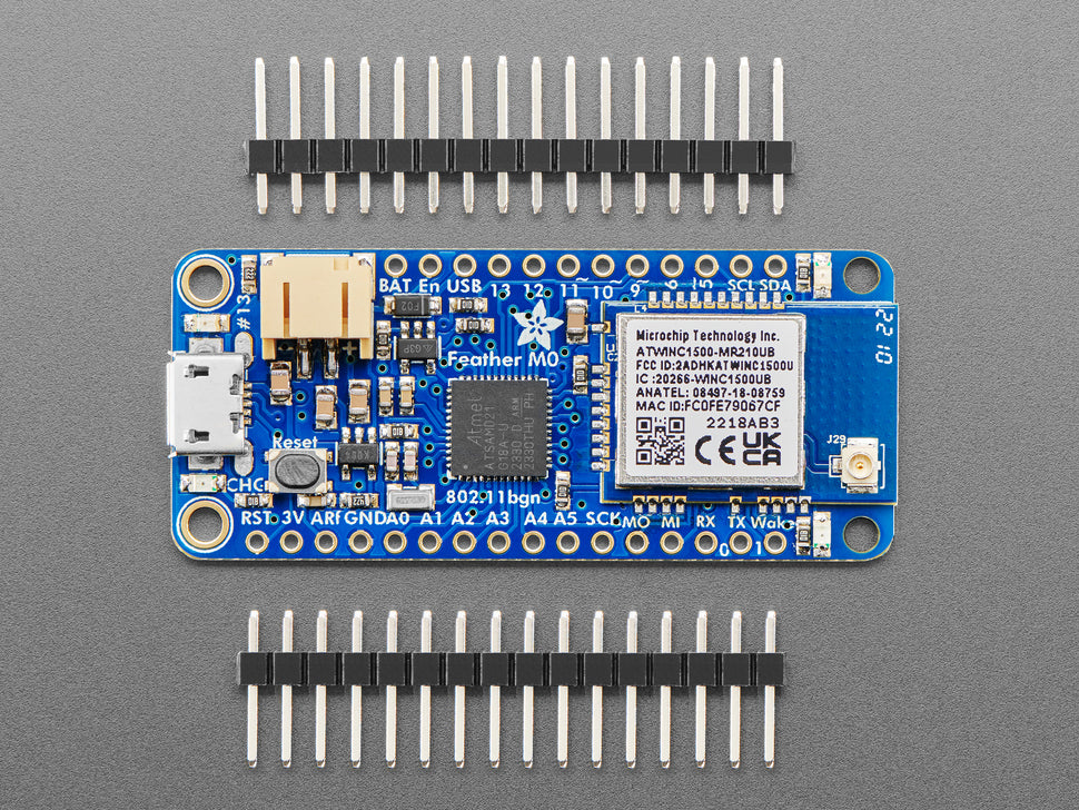 The Adafruit Feather M0 WiFi w/ATWINC1500 is a sleek and lightweight development board designed for portable microcontroller projects with integrated WiFi. With a focus on ease of use, it combines the performance of an ARM Cortex M0 processor with the convenience of an 802.11bgn WiFi module. Whether you're building IoT devices or need a mobile solution, this board offers everything you need to get started quickly.