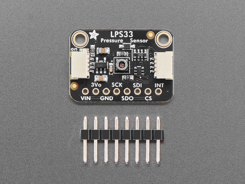 To make life easier so you can focus on your important work, we've taken the sensor and put it onto a breakout PCB along with support circuitry to let you use this little wonder with 3.3V (Feather/Raspberry Pi) or 5V (Arduino/ Metro328) logic levels. Additionally since it speaks I2C you can easily connect it up with two wires (plus power and ground!).  We've even included SparkFun qwiic compatible STEMMA QT connectors for the I2C bus so you don't even need to solder! Just wire up to your favorite micro and you can use our CircuitPython/Python or Arduino drivers to easily interface with the LPS33ASAP.