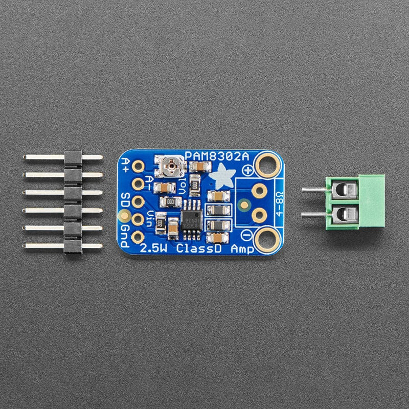 - Quick Setup: Includes a fully assembled and tested breakout board with a header for breadboard use and 3.5mm screw-terminal blocks for easy speaker attachment.
