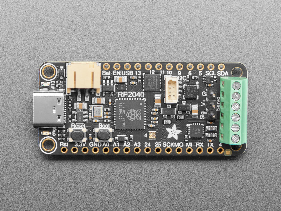 The Adafruit Feather series gives you lots of options for a small, portable, rechargeable microcontroller board. By picking a feather and stacking on a FeatherWing you can create advanced projects quickly. One popular combo is our Feather M4 or Feather RP2040 with a Prop-Maker FeatherWing on top to create animatronics or props that boot up instantly and can drive LEDs, and small speakers.