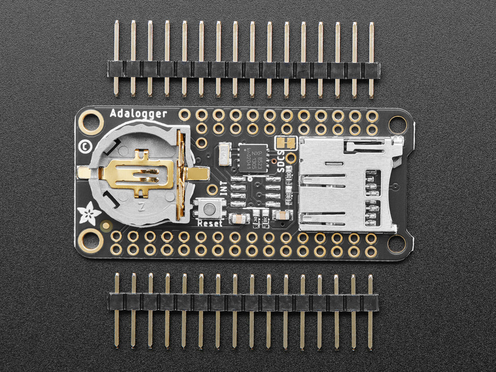 MicroSD Storage: The FeatherWing comes with a microSD card socket connected to the SPI pins of the Feather board, allowing for easy storage of data logs or other files. Please note, microSD cards are not included.