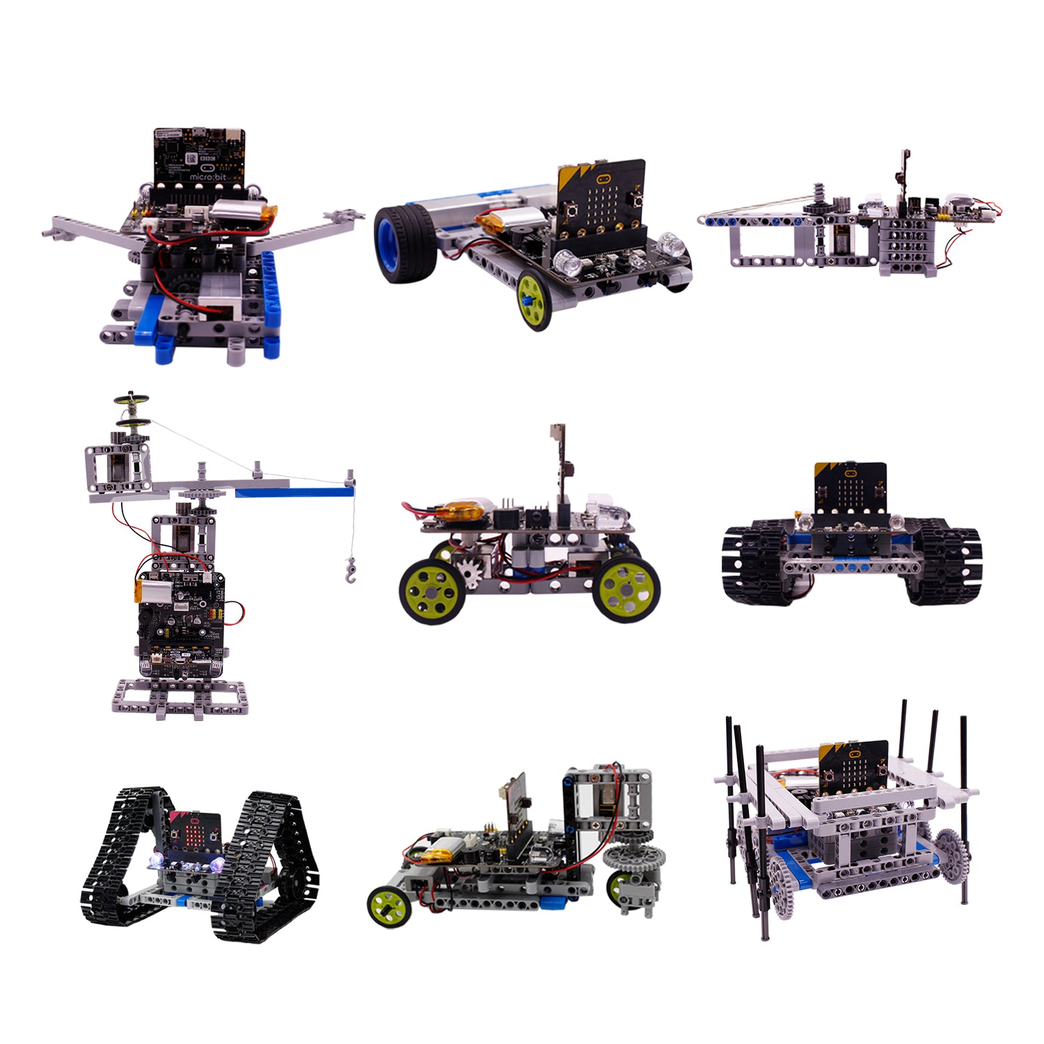 This micro:bit learning kit is the combination of electronic components with building blocks, and users can control them with micro:bit programming, such as infrared remote control, obstacle avoidance, tracking, colorful lights, and other functions. The building blocks are also compatible with LEGO, that if you are interested in building blocks and want to learn programming, this building block will be a good choice.