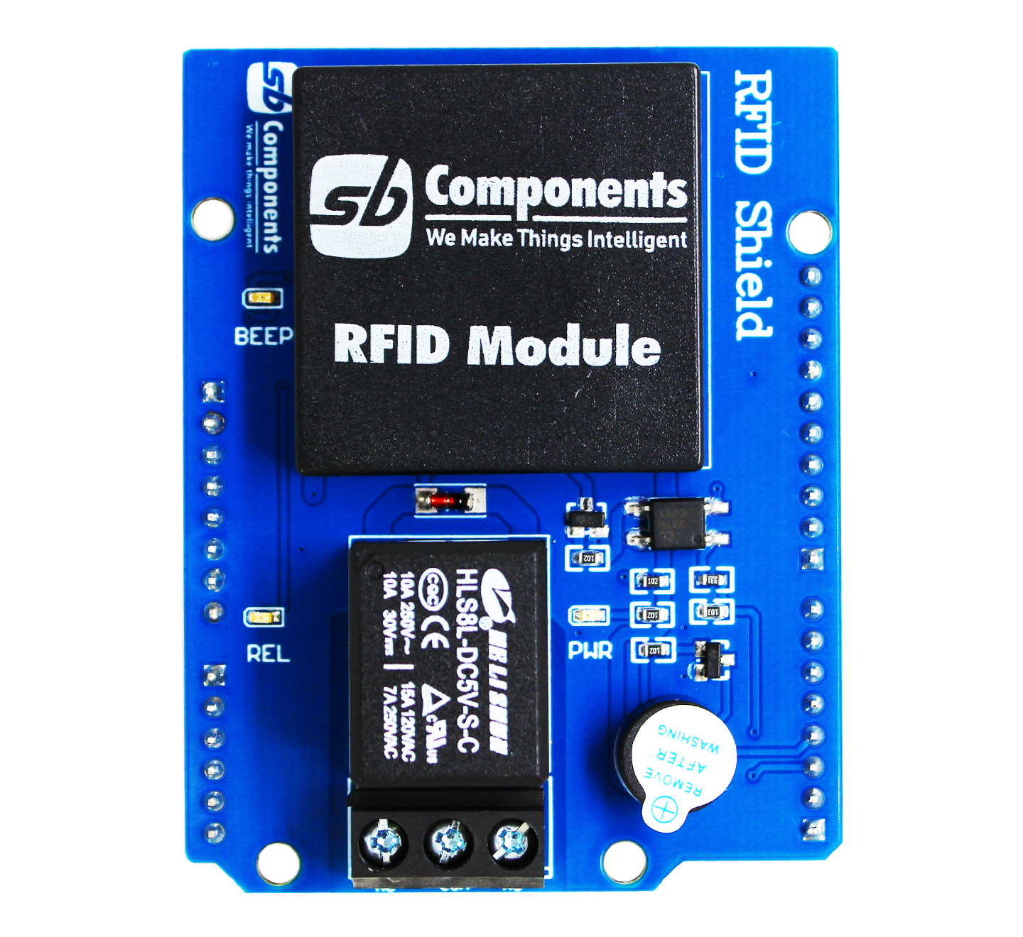 - Onboard 3 LEDs power, relay ON/OFF State and RFID Scan status