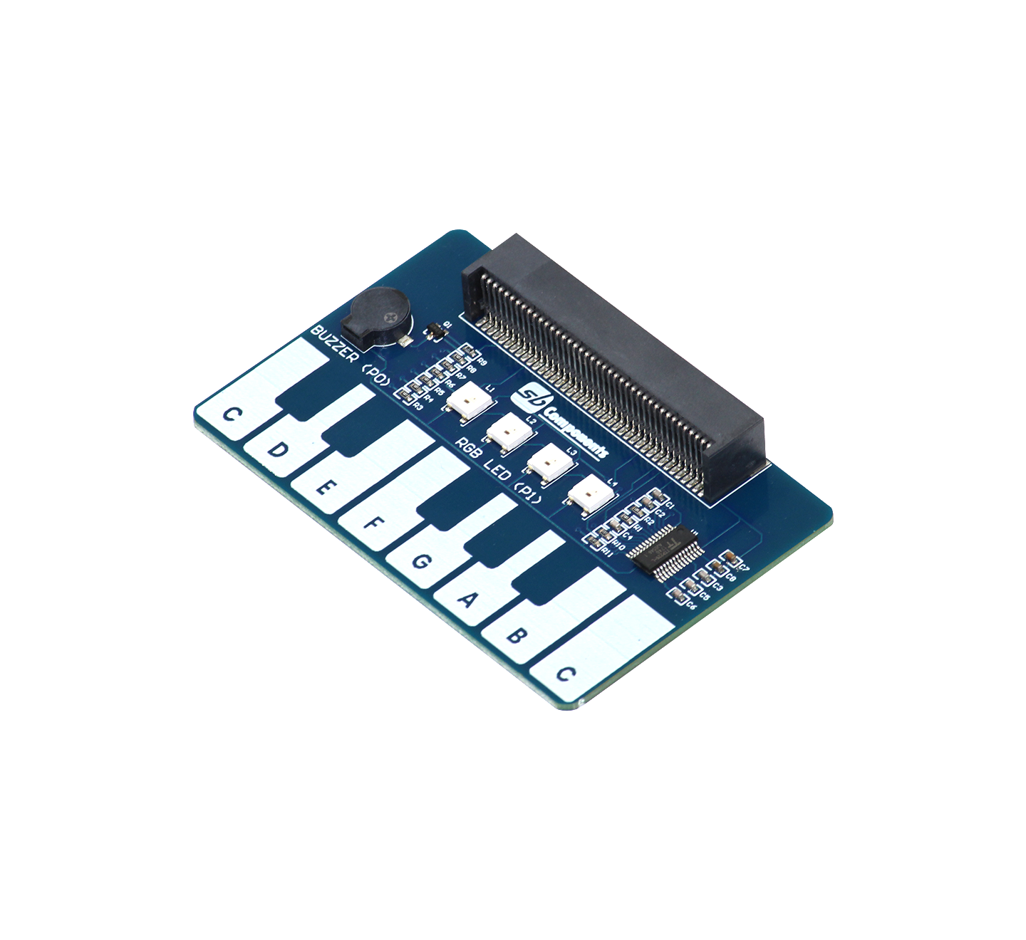micro:bit Piano is a piano module that runs on micro:bit from which you can play beautiful songs. There is an interface for you to connect to your micro:bit, four RGB LEDs make your board brilliant. This piano module has a capacitive touch chip that prompts 13 contact keys to simulate your piano keys, you can play your preferred music.