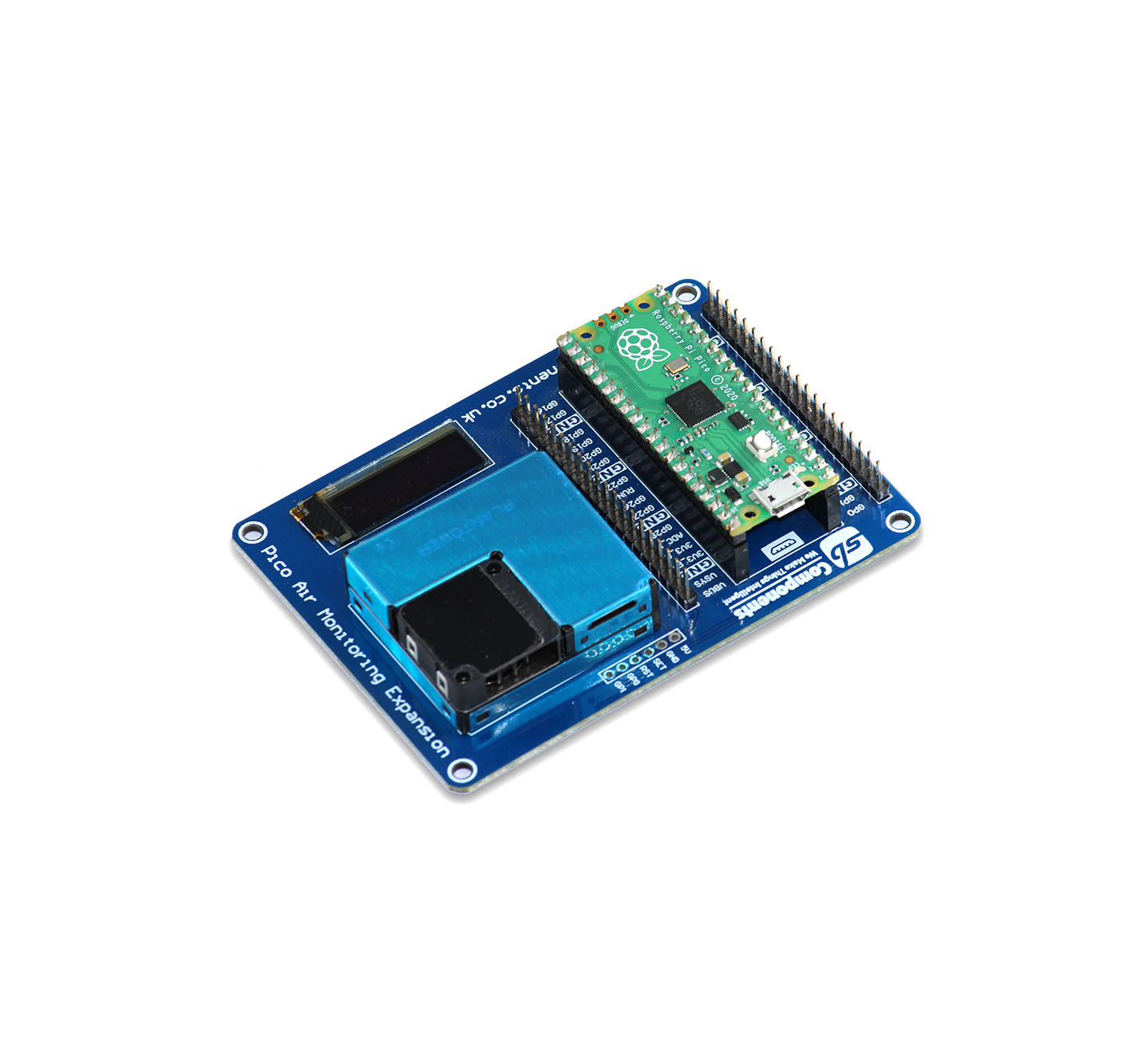The Pico Air Monitoring Expansion is a high-performance environmental sensing module designed for Raspberry Pi Pico. This compact expansion board allows real-time monitoring of air quality, temperature, humidity, and particulate matter, making it ideal for IoT, smart home, weather stations, and industrial applications. With advanced sensors and seamless integration with Raspberry Pi Pico, it enables accurate and reliable data collection for improved environmental awareness.