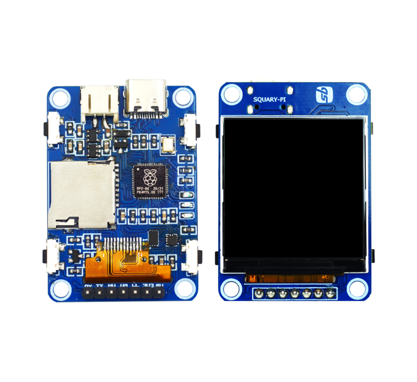 SquaryPi is a square LCD display based on the RP2040, with a tiny and attractive 1.54-inch display module with 240x240 pixels resolution and 350 nits brightness. Its 65K RGB colors and apparent vivid visual effect allow it to broaden its engagement with your project.