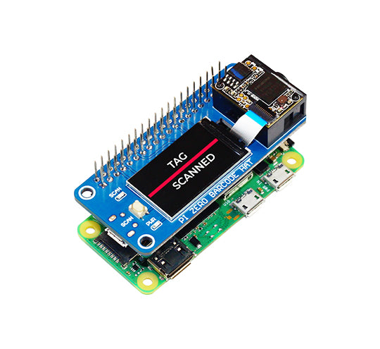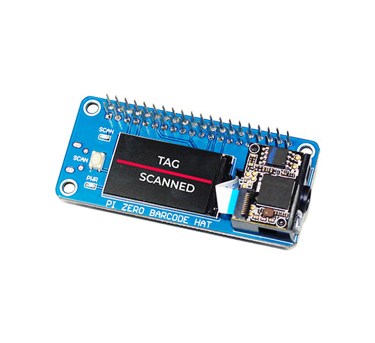 The Zero Barcode HAT is a robust and compact barcode scanner board based on the Raspberry Pi zero form factor that includes a DE2120 scanner module, buzzer, 1.14" LCD screen, and a micro-USB connector. It is designed to scan 20 distinct barcode symbologies (both 1D and 2D) with an on-board camera and image processing to recognize and decode everything from UPC codes to QR codes. The module also has two LEDs: one for lighting and one to project the red line seen on laser-based scanners.