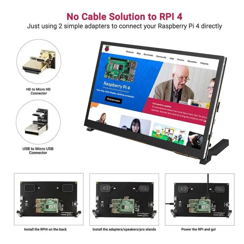 This 10.1 inch HD display with a capacitive USB touchscreen, Simply power the USB touch port to achieve touch function, and no need to install the driver, just plug and play! Especially, with dual removable speakers to enhance your audiovisual experiences. Four corner holes let you mount the small monitor onto your DIY IoT projects that you’re working on. It can be used as a computer monitor, supports the win7 / win8 / win10 system, and is touch-free.