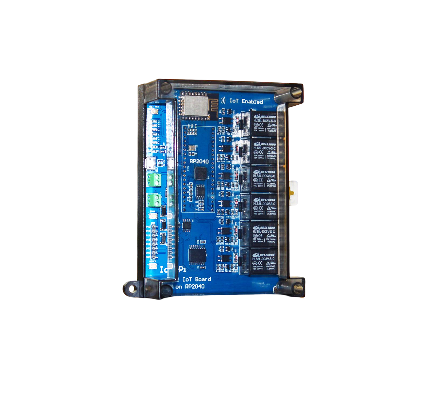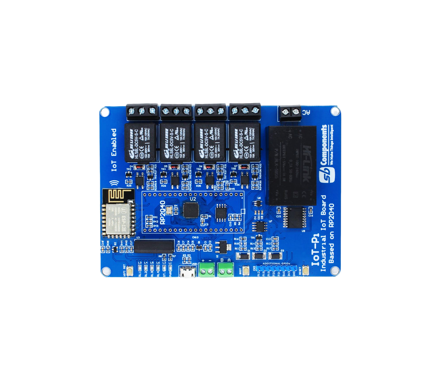 Both IoTPi 4 and 6 Channel Boards come with an onboard RP2040 micro-controller, ESP8266 Wi-Fi module, 4/ 6 relays, Isolation Power Supply, and Isolation Photocoupler. Additionally to these, the 4-channel IoTPi board also has an AC/ DC Convertor. IoTPi 4 and 6 channel hardware is an industrial board that can manage up to 4 and 6 appliances/ devices respectively on the load of photo-coupling isolation Optocoupler EL357NC, allowing users to securely regulate high voltages or current. IoTPi smartens appliances while allowing customers to control them via the PiRelay software on their electronic devices.
