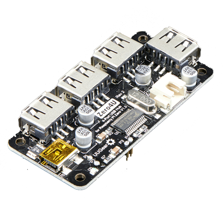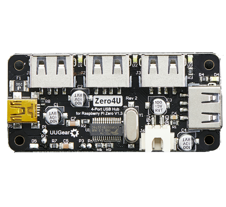 This is a 4-port USB hub for Raspberry Pi Zero, and it can be mounted to Raspberry Pi Zero back-to-back. After mounting this USB hub to your Raspberry Pi Zero, it immediately has 4 USB ports that could transfer data in USB 2.0 high-speed. The 4 pogo pins on the back will connect the PP1, PP6, PP22 and PP23 testing pads on Raspberry Pi Zero, hence no soldering will be needed.