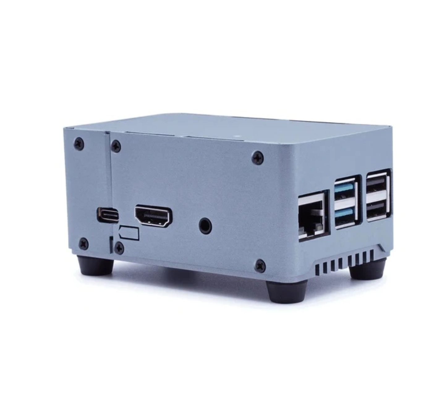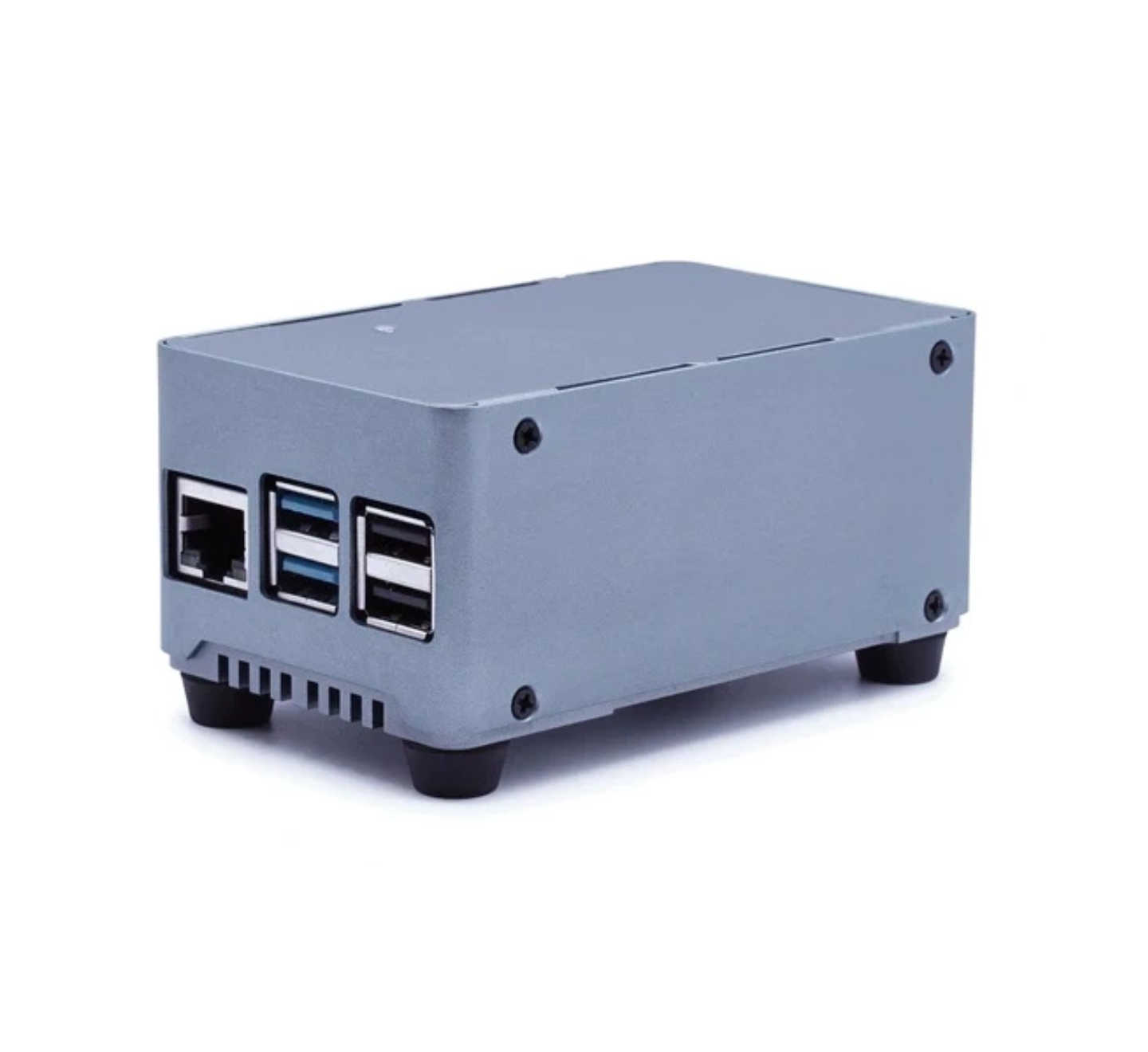 This sturdy case is constructed of sandblasted aluminum, has a grey anodized finish, and is specifically designed for the. It provides enough room to fit your extra hardware, such as a shield or HAT. It is sturdy as a ROCK, offers protection, and has a sleek appearance.