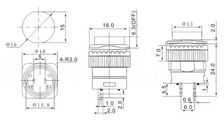 - 16mm diameter button with a total max dimension of 18.06 mm x 18 mm x 29.4 mm
