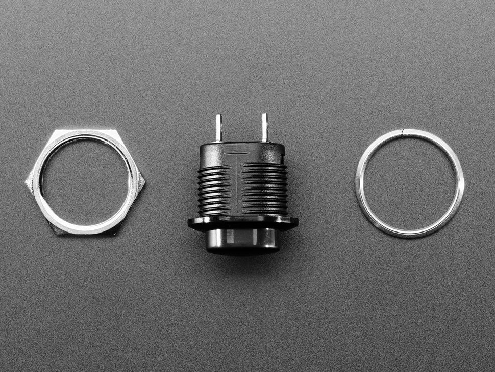 OK, this item is pretty simple - it's a panel mount momentary pushbutton in black color. It features a rounded shape with an elegant bevel, providing a clean and professional look to your projects. The button is a normally-open micro-switch that short closes when pressed.