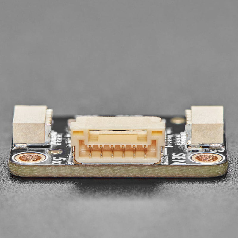 This adapter breakout will make an instant friendship with all SEN5x boards, thanks to a JST GH-compatible connector in the middle so that you can plug a 6-pin GH cable directly between your SEN and this adapter. In the middle is a small switch-cap boost converter that will generate 5V at 100mA to power the fan and electronics in the SEN5x even if you're using 3V power and logic. Then you can use any old STEMMA QT cable to plug into your Metro, Feather, QT Py, Raspberry Pi, etc. I2C port.