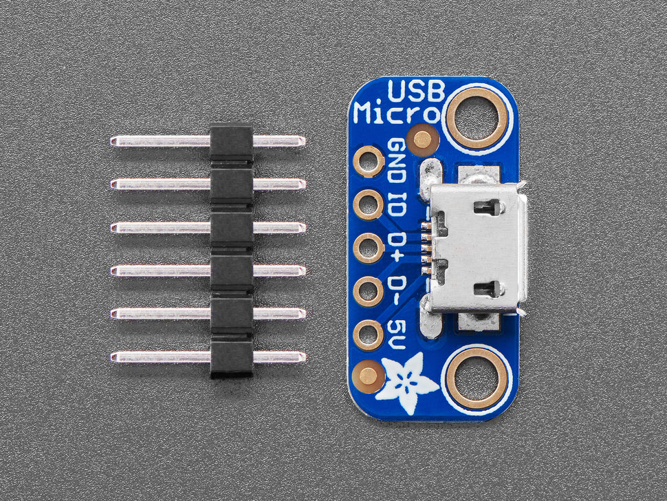 Simple but effective, this breakout board features a USB Micro-B connector with all 5 pins broken out. Ideal for pairing with a microcontroller that supports USB or for adding USB 5V power to your projects.